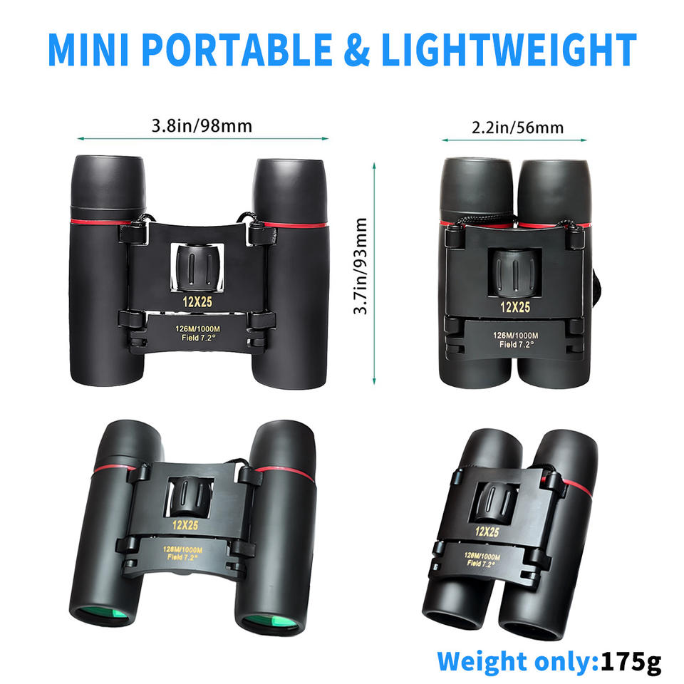 Binoculares Ópticos Compactos de Alta Potencia 12X25, Plegables, para Observación de Aves, Observación de la Naturaleza, Largo Alcance, Vista Amplia, para Exteriores