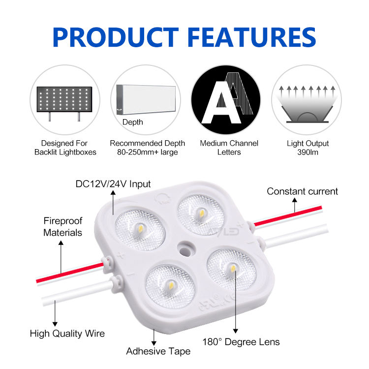 Módulo de inyección LED SMD de un solo color con 4 LEDs para cajas de luz.