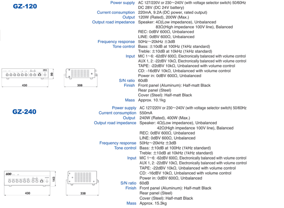 Amplificador de Alta Potencia UNI-PEX GZ-120 / GZ-240Tipo