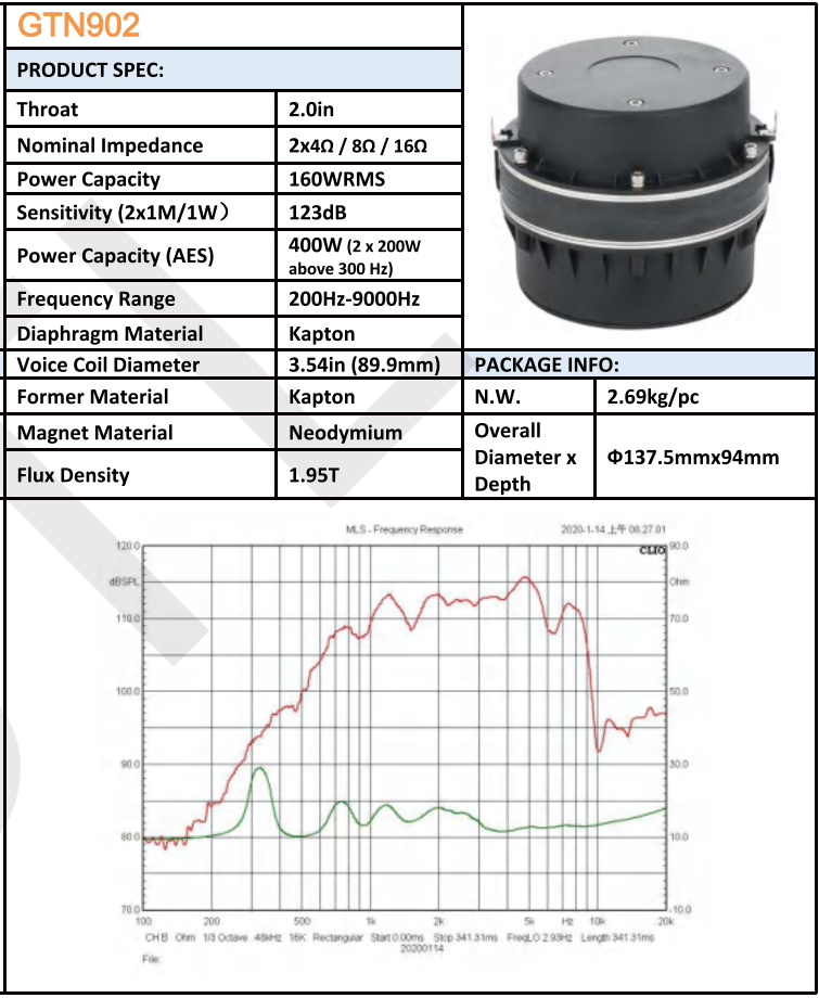 Controlador de Bobina de Voz Dual de Alta Potencia 2x90mm, Bobina de Cobre, 115dB, Sistema de PA para Eventos al Aire Libre, Audio Profesional para Teatro GTN902