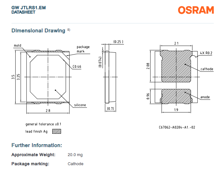 OSRAM de alta potencia DURIS E 2835 GW 0,92 W CRI80 140LM 2200-6500K Chip de luz LED