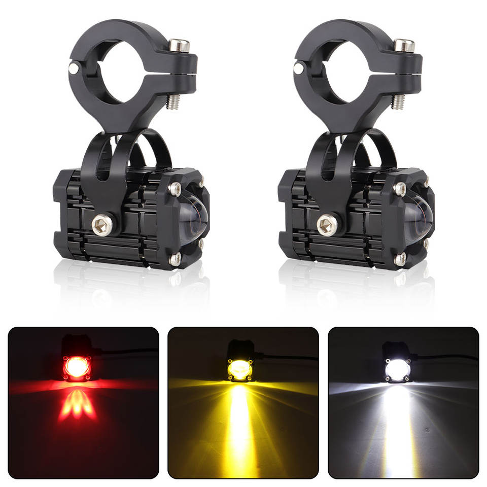 Faro LED de Alta Potencia para Motocicleta, Tres Colores (Rojo, Amarillo, Blanco), Luces Auxiliares Intermitentes, Repuesto con 2 Años de Garantía, Tipo Niebla Demon