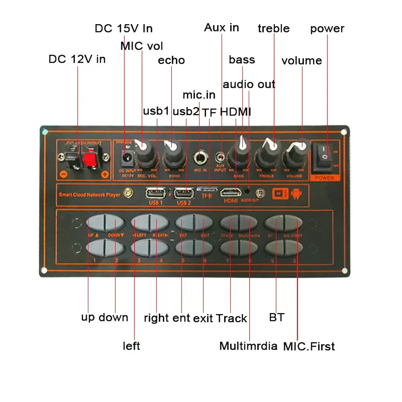 Bottons (Bottons):Volumen maestro/agudos/bajo/ECO/volumen del MIC