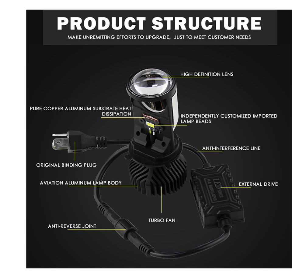 Lente de Proyector Bi-LED Mini Y6 H4 de Alta Potencia, Bombilla LED Canbus de 80W, 12V, 6000 lm, Ajuste Universal
