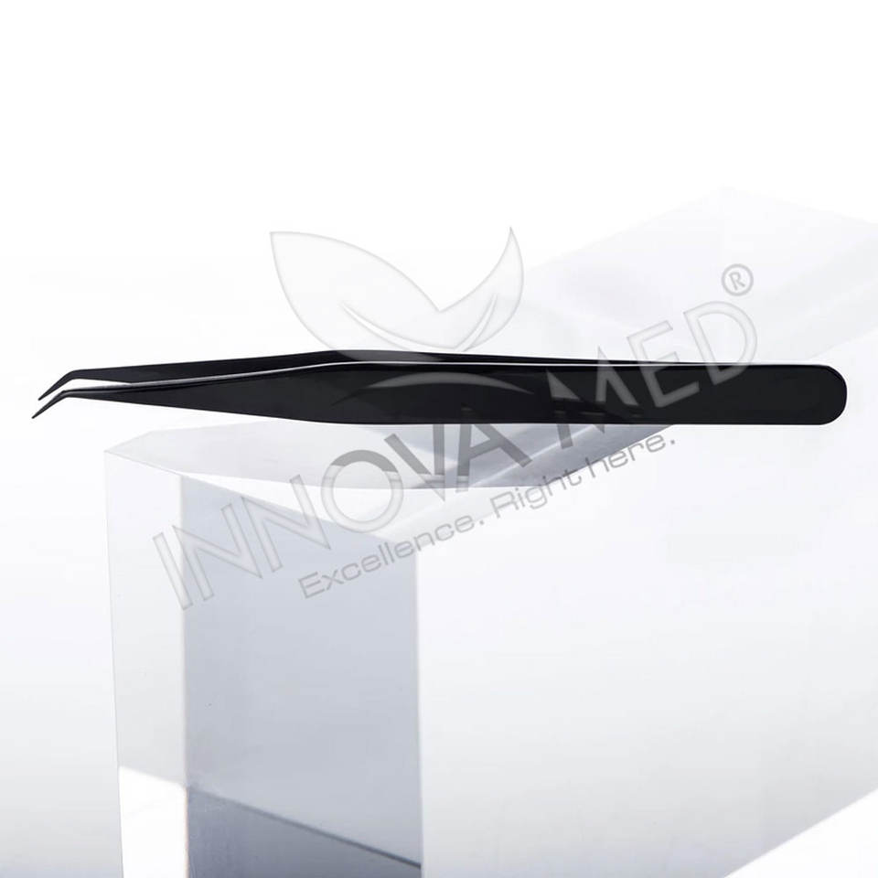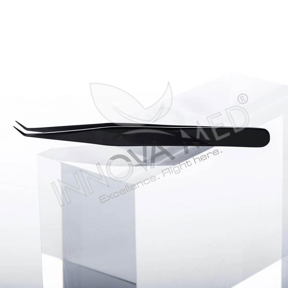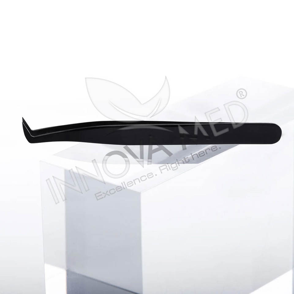 Pinzas de punta de fibra de 90 grados de alta precisión, pinzas antiestáticas de Pakistán, pinzas de acero inoxidable, extensiones de pestañas, logotipo personalizado