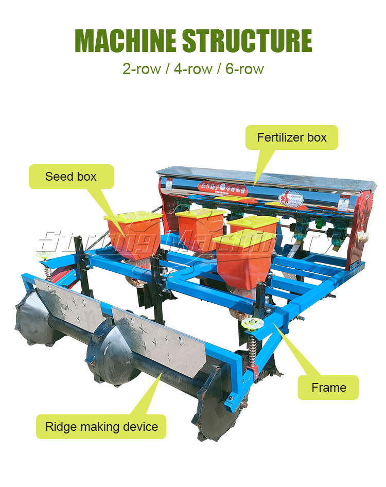 Máquina de siembra de alta precisión 2/4/6 filas plantadora de maíz de maní con caja de fertilizante