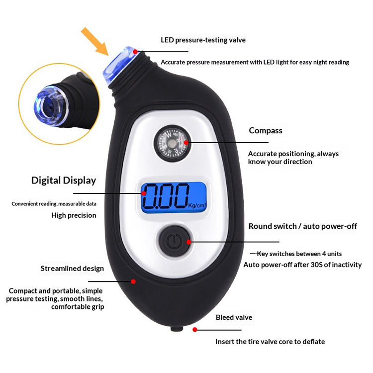 Manómetro Digital de Alta Precisión para Neumáticos de Automóvil con Pantalla LCD, Compatible con OEM, Certificado CE, FC y RoHS, Venta al Por Mayor