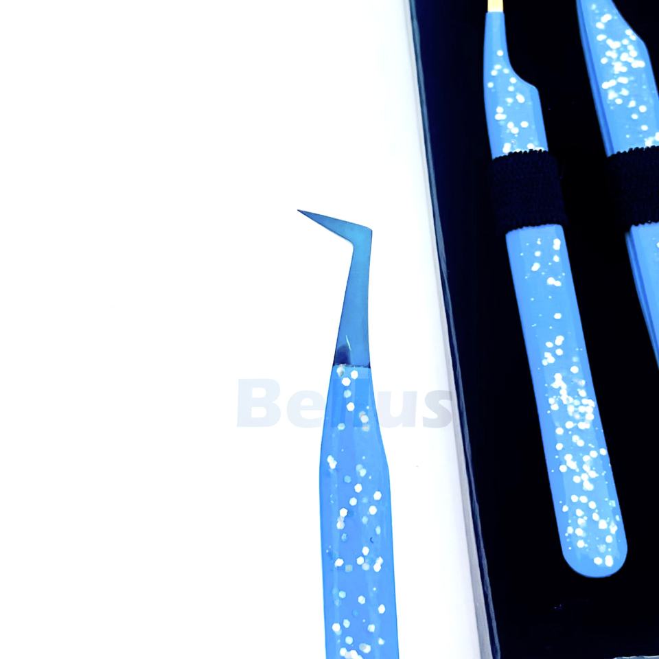 Juego de pinzas para pestañas de punta completa con etiqueta privada personalizada de alta precisión, herramientas para pestañas de acero inoxidable para aislamiento de volumen