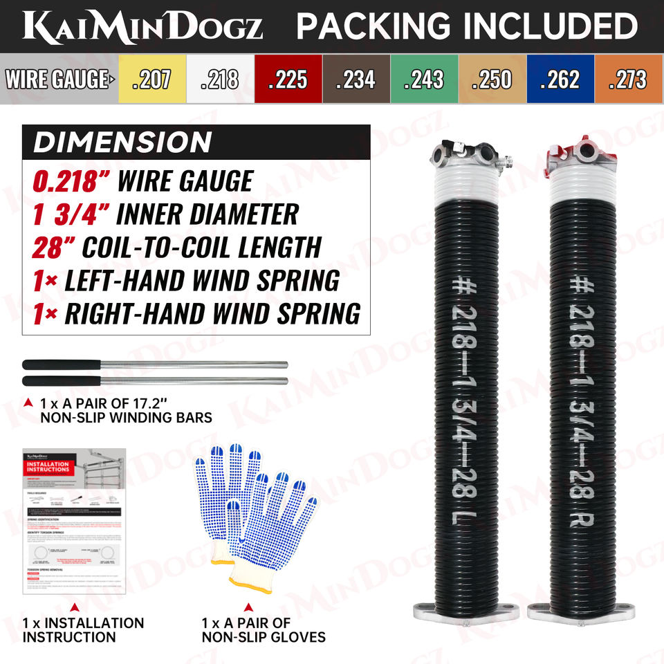 Electroforesis de alta precisión 0.218X1.75 "X28" Juego de resortes de torsión para puerta de garaje con barras y guantes antideslizantes