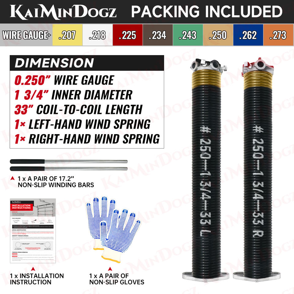 Electroforesis de alta precisión 0.250X1.75 "X33" Juego de resortes de torsión para puerta de garaje con barras y guantes antideslizantes