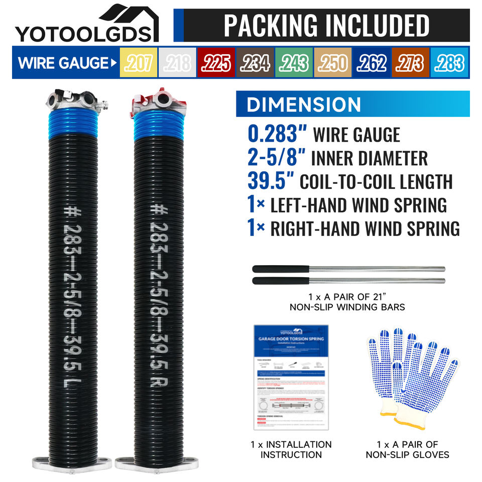 Juego de Resortes de Torsión para Puerta de Garaje de Alta Precisión, 0.283X2-5/8\"X39.5\", Barras de Enrollado Antideslizantes, Guantes