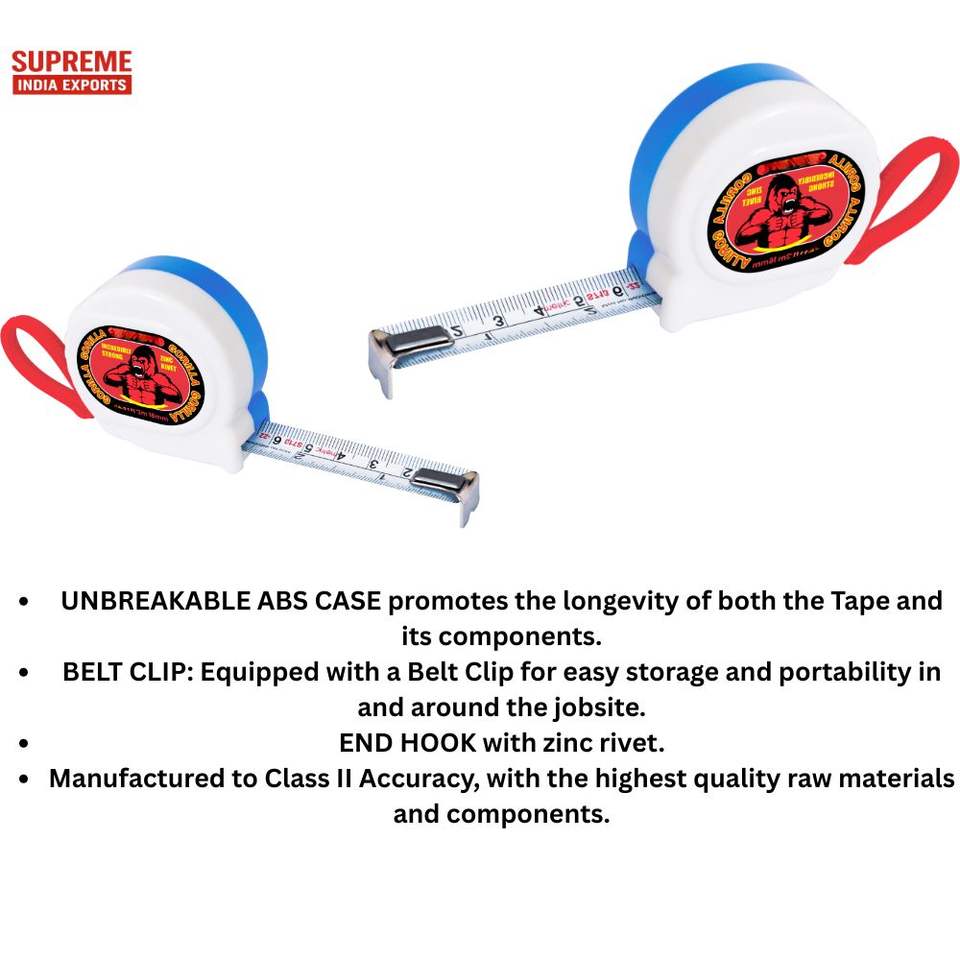 Cinta métrica de alta precisión 3M 5m con caja de ABS irrompible Clip de cinturón de gancho de extremo de remache de zinc para construcción y taller