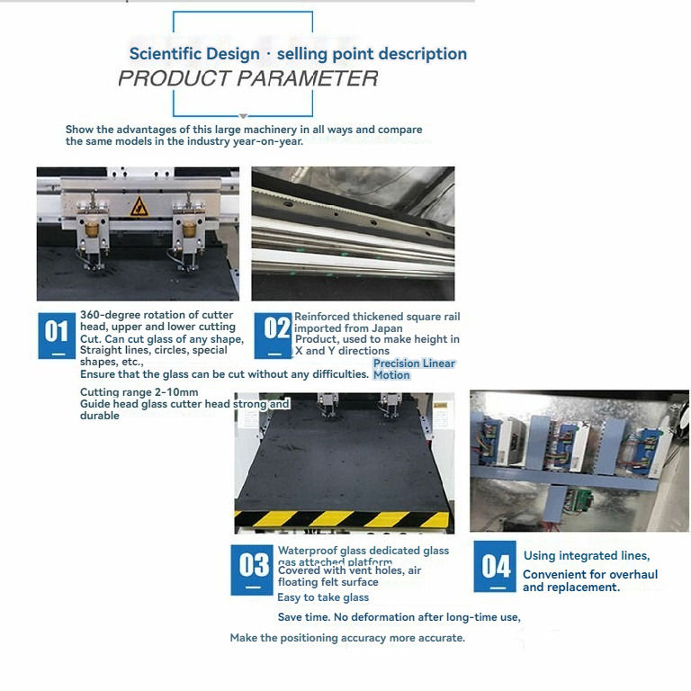 Mini cortador de vidrio de alta precisión 5.5kW Motor multicabezal PLC y motor para corte automático de vidrio delgado para plantas de fabricación