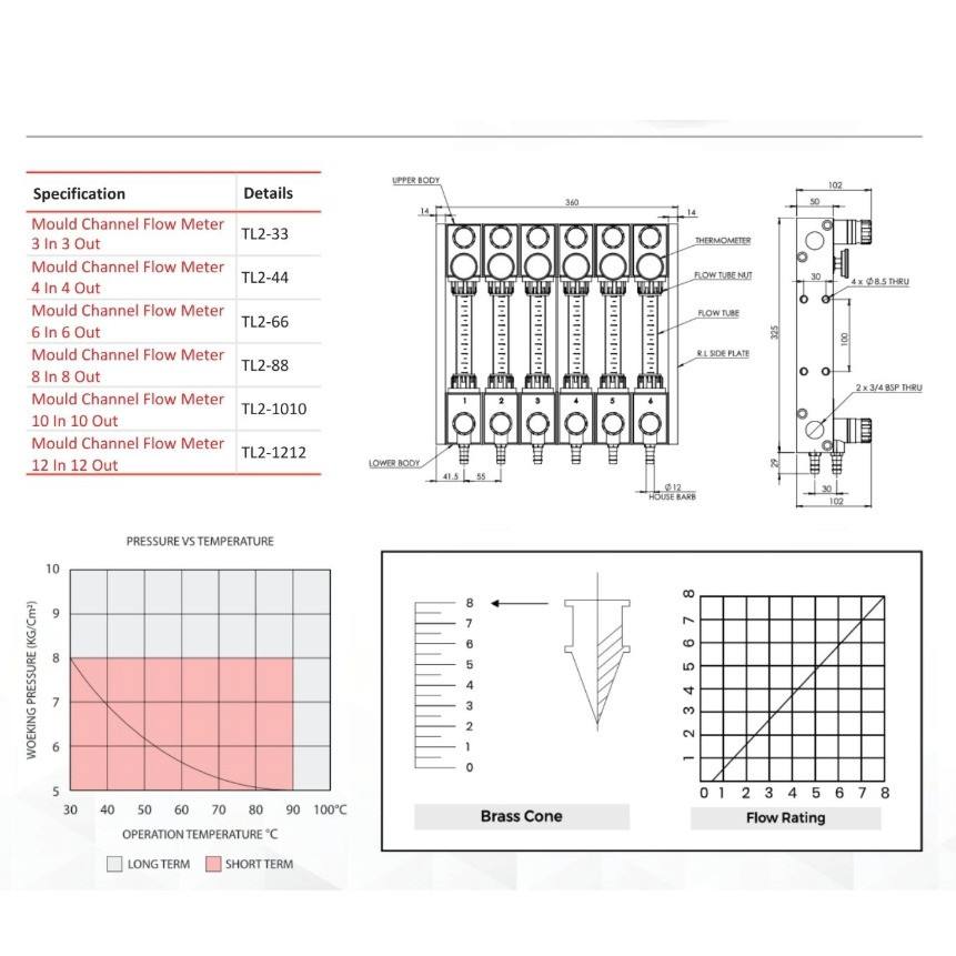 Mould Channel Flow Meter 8 In 8 Out:TL2-88