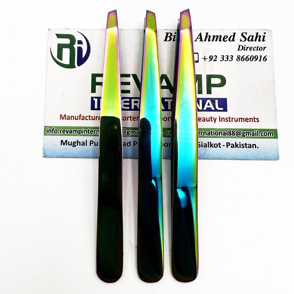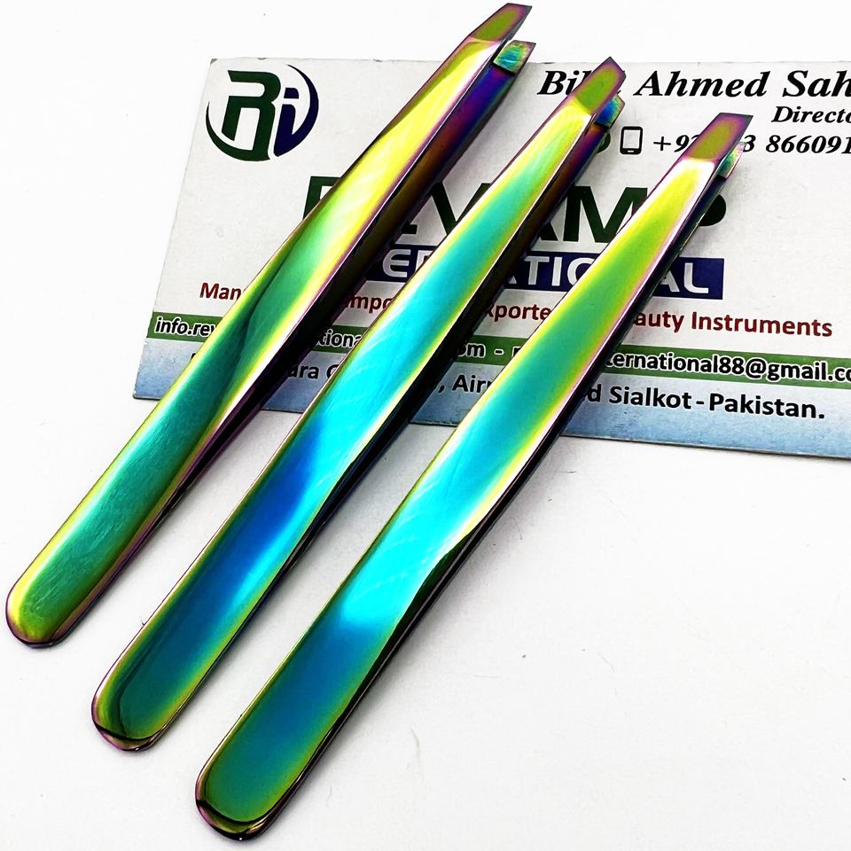 Pinzas de Cejas de Acero Inoxidable de Alta Precisión con Punta Inclinada, Logotipo Personalizado, Multicolor
