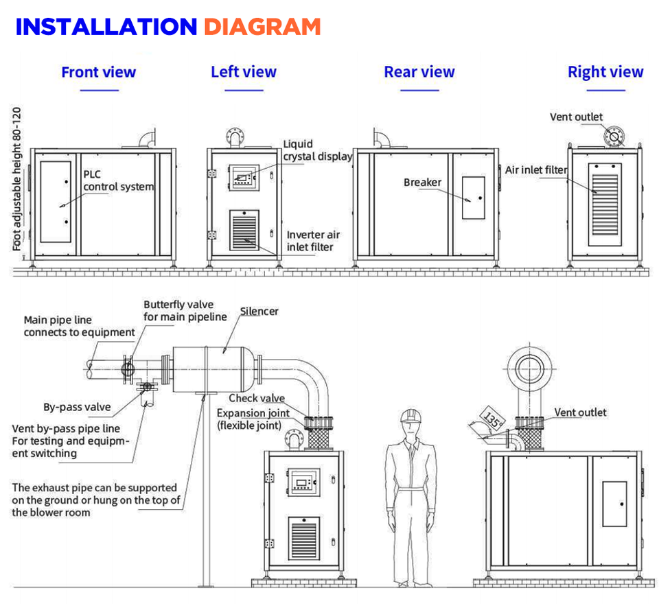 Product name:Semi-permanent magnetic levitation centrifugal air turbo blower