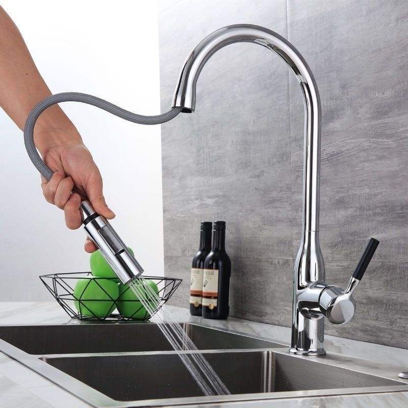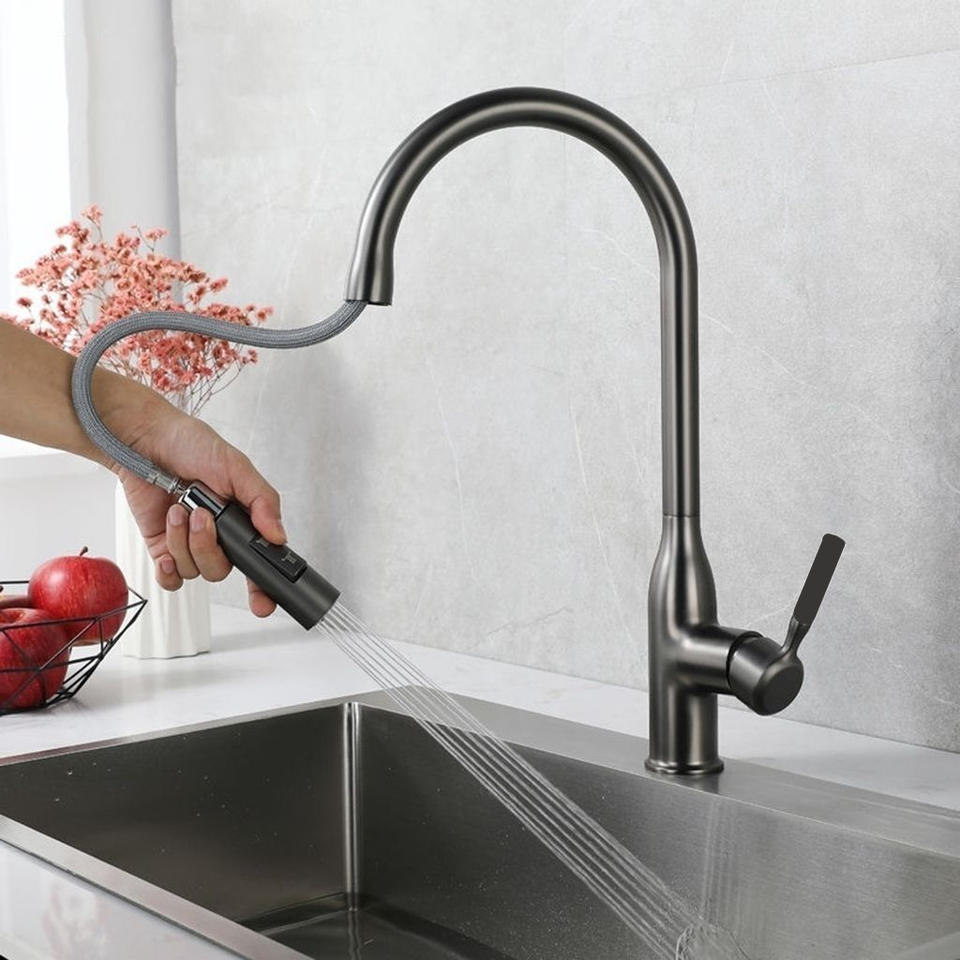 Grifo de Cocina Extraíble de Alta Presión con Función de Enjuague, Acabado en Gris Metálico, con Rociador Multifuncional
