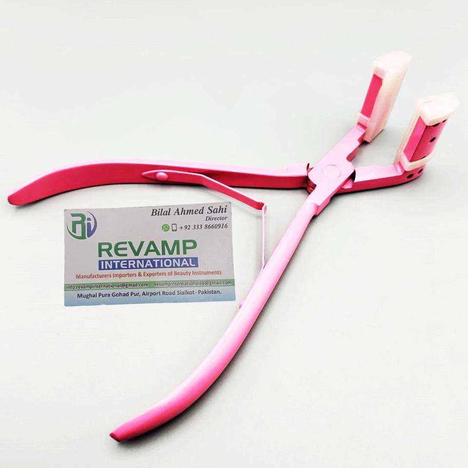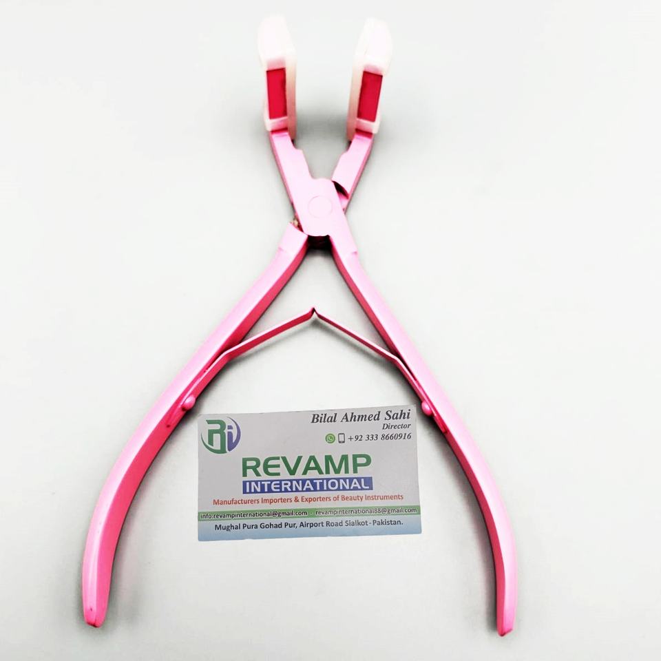 Herramientas de extensión de cabello ecológicas de alta Etiqueta Privada Alicates de cinta atados a mano de punta plana de acero inoxidable Mango Rosa Nueva Zelanda