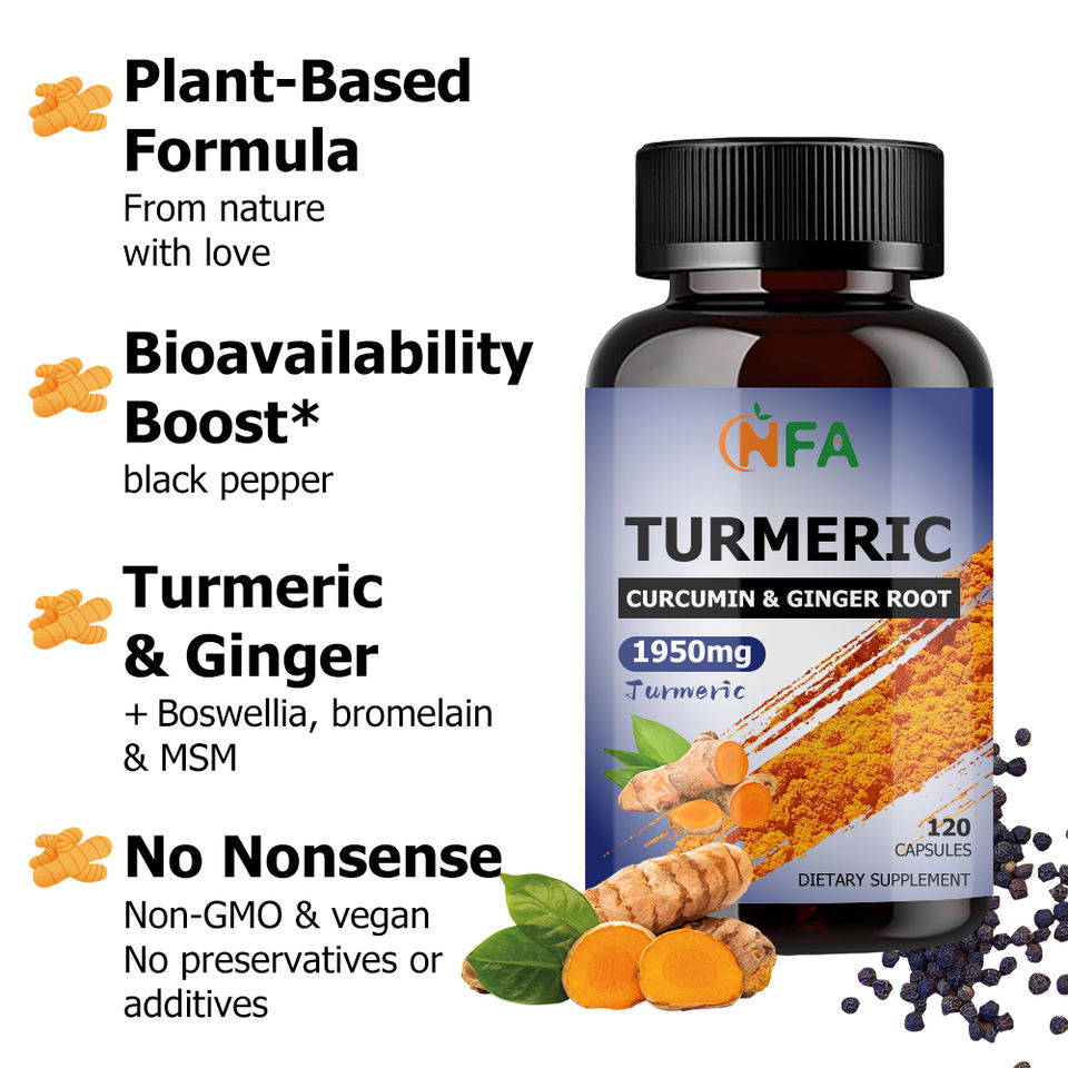 Cápsulas de Cúrcuma de Alta Pureza con Curcumina y Raíz de Jengibre, Mejoran la Movilidad Articular y Favorecen un Envejecimiento Saludable