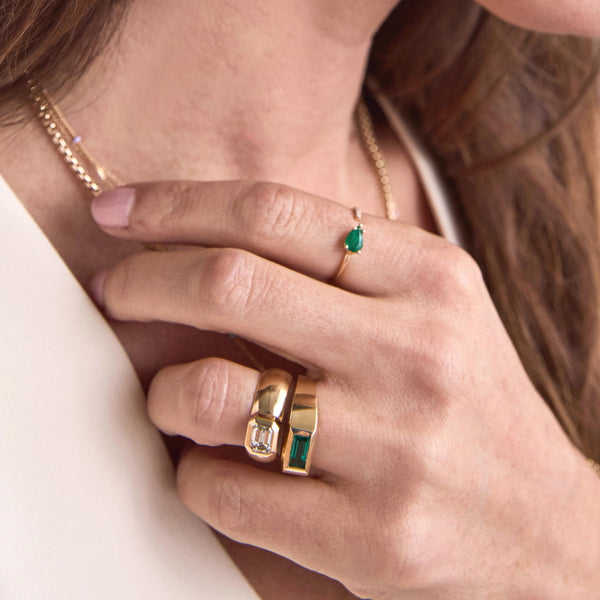 Forma \ patrón:Anillo de piedras preciosas de corte esmeralda