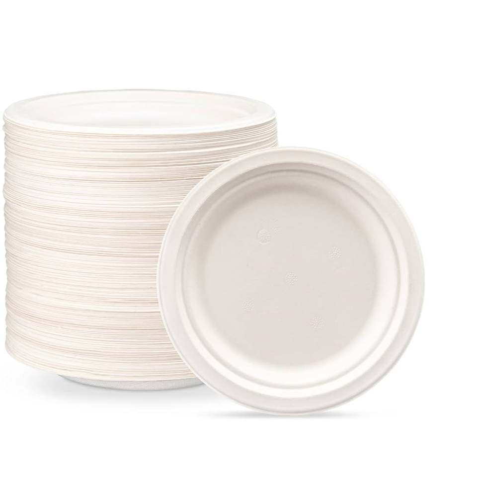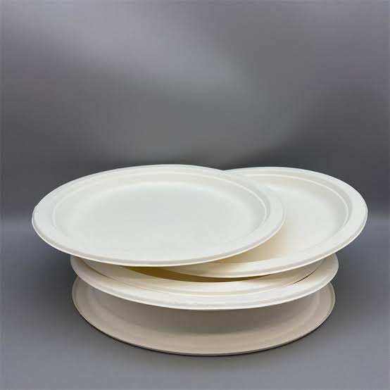 Platos Desechables de Bagazo de 10 Pulgadas de Alta Calidad, Biodegradables, Compostables, Ecológicos, Naturales, Sin Blanquear, Blancos, Reutilizables