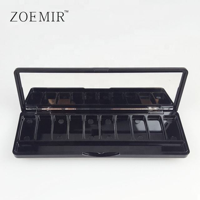 Paleta de sombras de ojos 10 Pan de alta calidad, caja de colorete UV brillante negra vacía, paleta correctora vacía rectangular con espejo