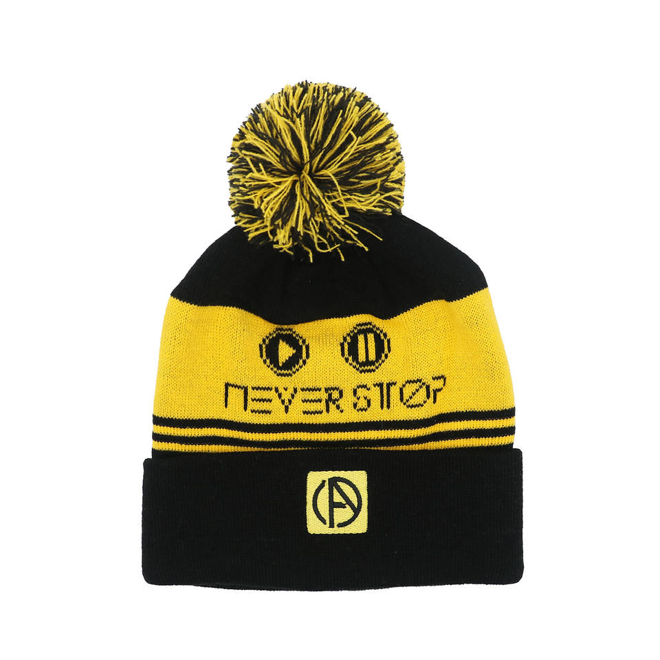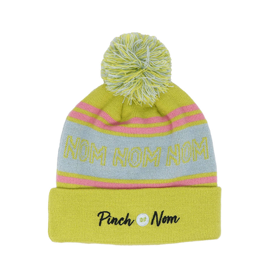 Gorro de punto de alta calidad 100% acrílico con logotipo bordado personalizado, unisex, diseño de color brillante, gorro con pompón.