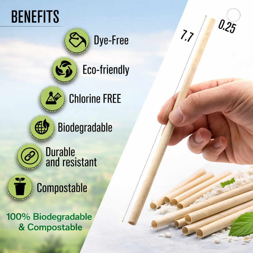Pajitas de Papel Kraft 100% Compostables de Alta Calidad, Aptas para Alimentos, para Bebidas Frías y Té de Burbujas, para Fiestas