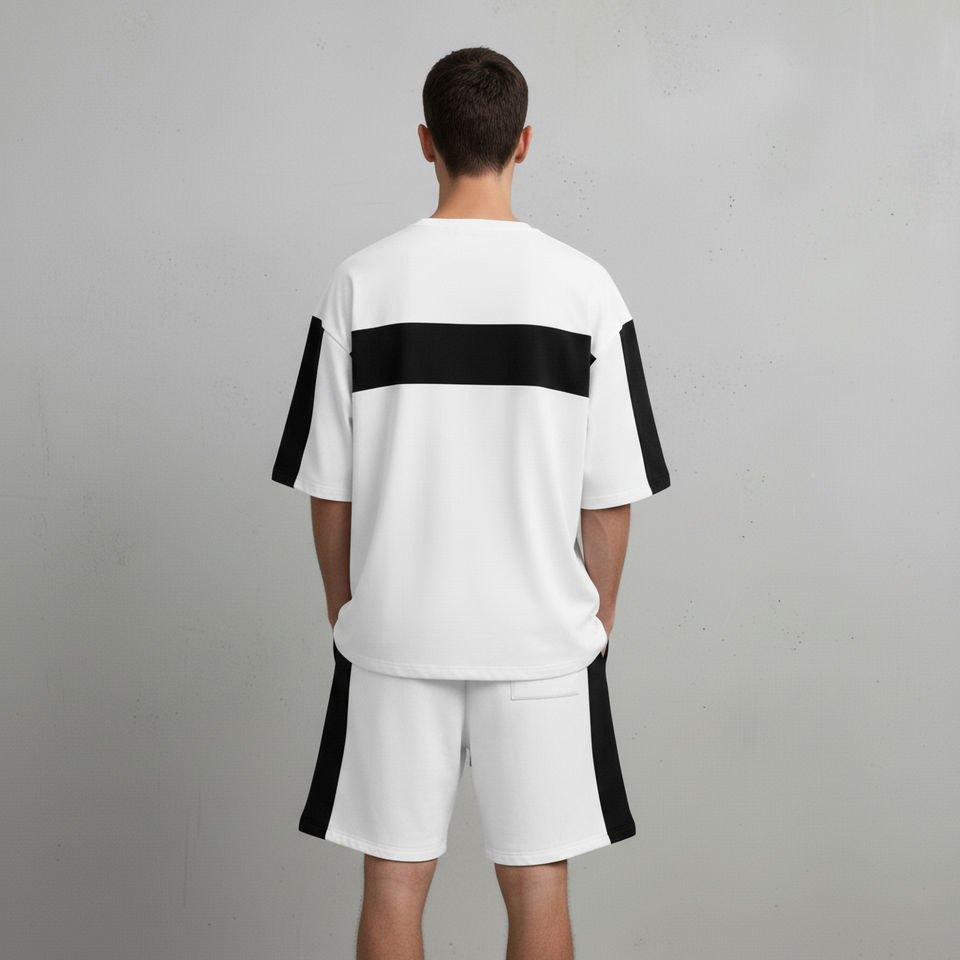 Conjunto de Pantalones Cortos para Hombre de Talla Grande, 100% Algodón de Alta Calidad, Personalizado, de 2 Tonos, con Hombros Caídos, Cómodo, Estilo Urbano, Conjunto de 2 Piezas