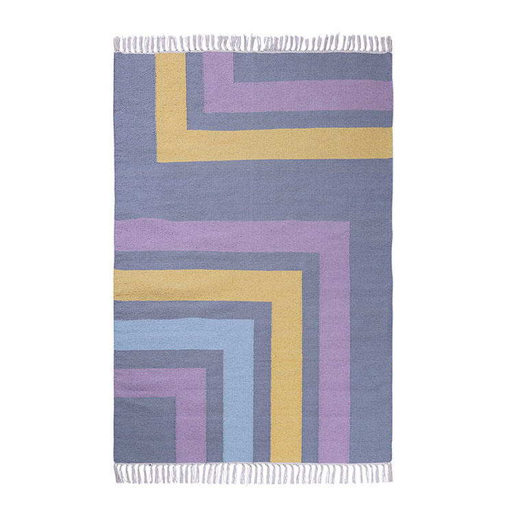 Alfombras bordadas hechas a mano de algodón 100% de alta calidad Alfombras Diseño moderno con patrón de rayas Disponible a un precio excelente