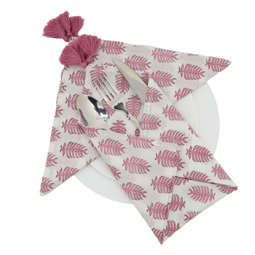 Servilletas Cuadradas de Algodón 100% de Alta Calidad, Color Rosa Caramelo, Nueva Tendencia Moderna, Accesorio Hecho a Mano en India, Servilletas con Borlas