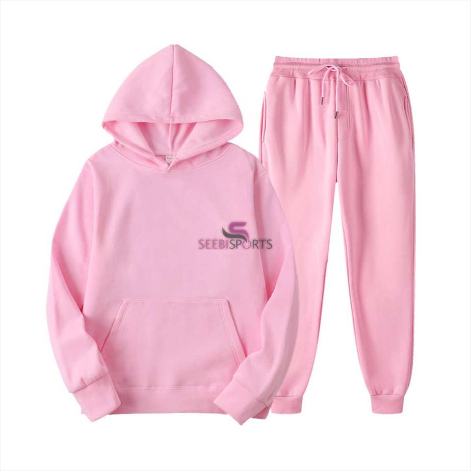Chándal de algodón 100% de alta calidad para mujer, chándal liso de dos piezas de gran tamaño