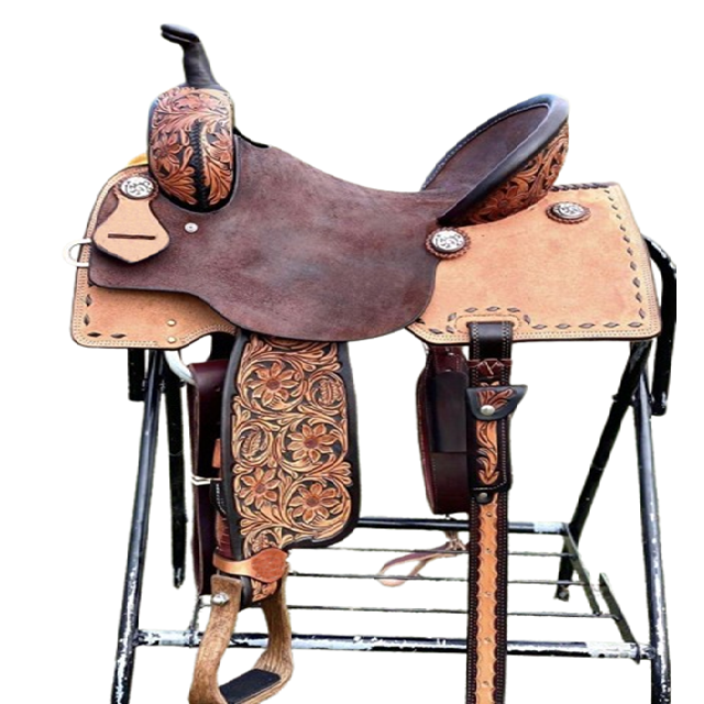 Sillín de caballo inglés occidental de carreras de Cuero 100% de alta calidad cómodo con estribo de aluminio para montar a caballo