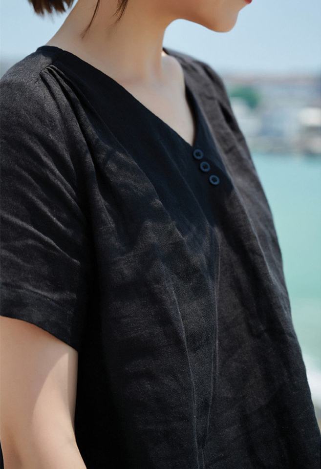Product Name:Linen Top Linen Short Sleeve Blouse