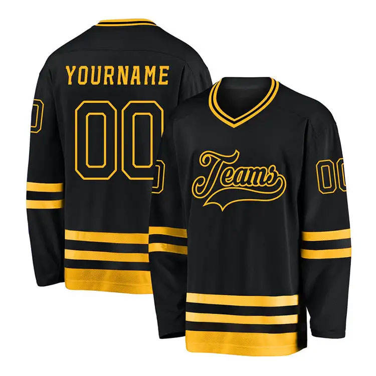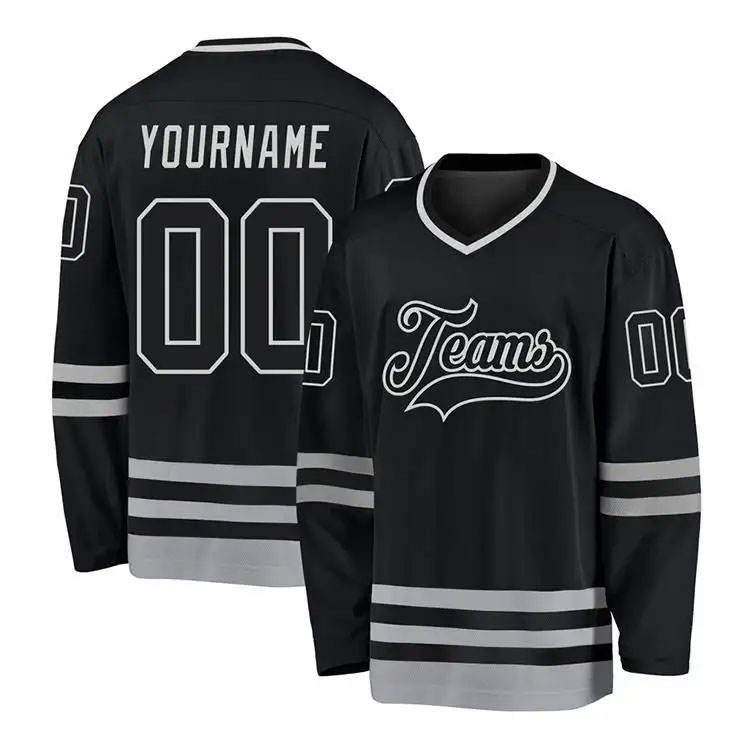 Camiseta de hockey sobre hielo de poliéster 100% de alta calidad, impresión por sublimación, logotipo bordado, camiseta de hockey sobre hielo personalizada, transpirable, OEM