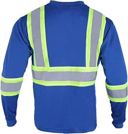 Camisa de Trabajo de Alta Visibilidad de Manga Larga 100% Poliéster de Alta Calidad, Camisa de Seguridad Reflectante de Alta Visibilidad para Hombre