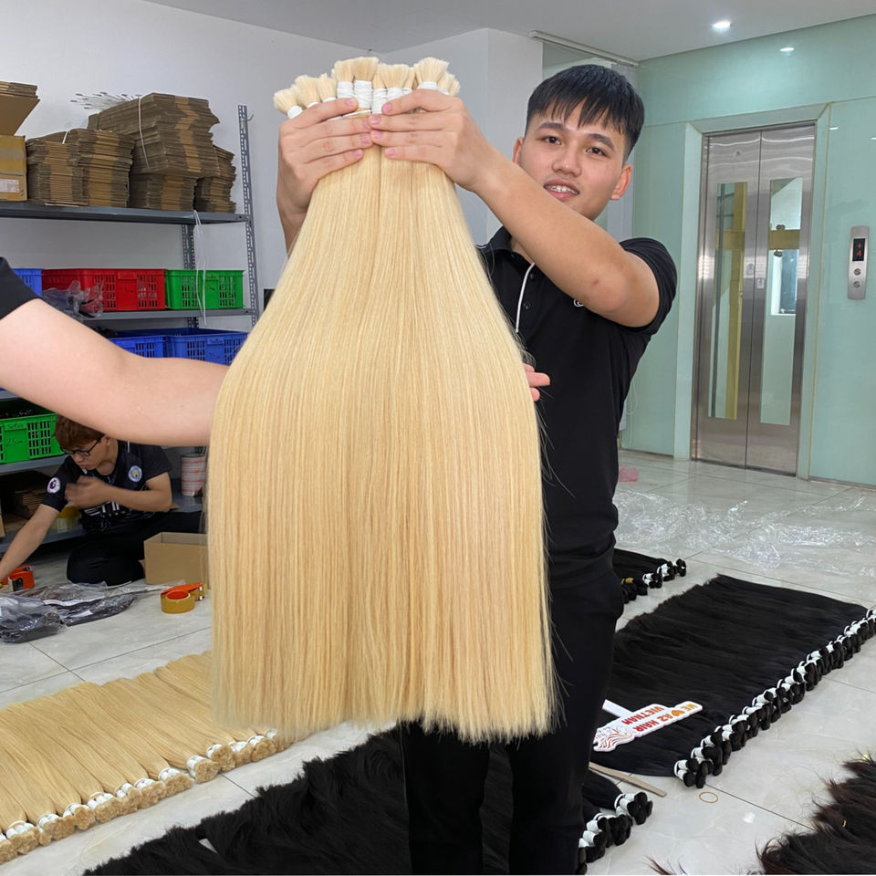 Extensiones de cabello humano vietnamita Remy 100% de alta calidad personalizado a granel recto varios colores materia prima Formato de paquete de ondas