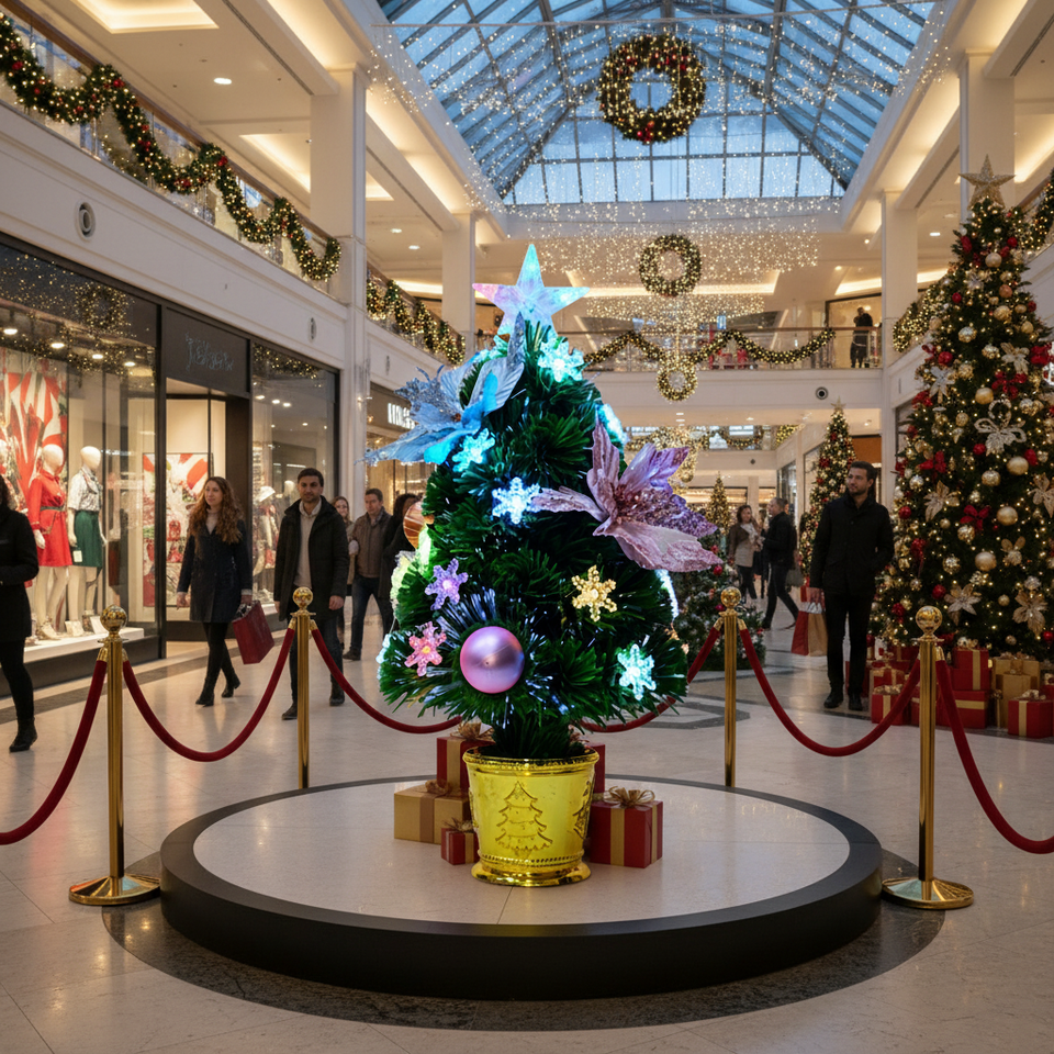 Árbol de Navidad Preiluminado con LED de Alta Calidad, 10 m, Adornos de Flor de Pascua, Copos de Nieve, Decoraciones para Centros Comerciales, Celebraciones Navideñas, 12 Piezas/Caja