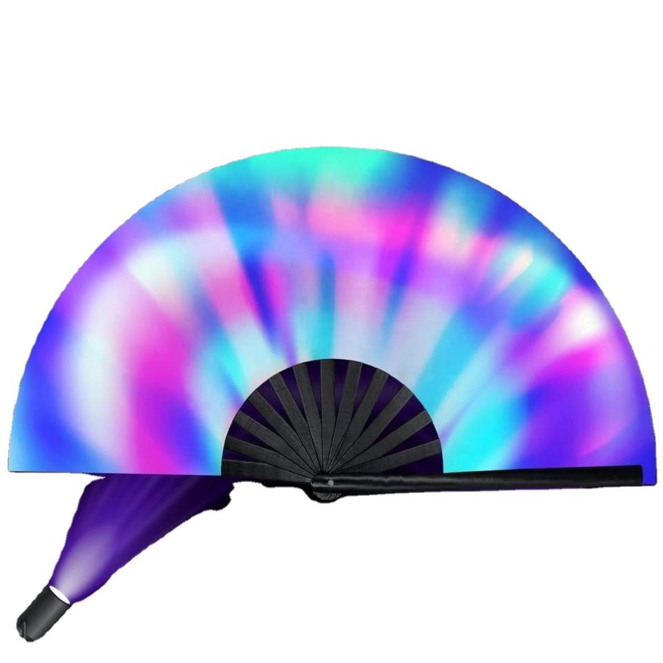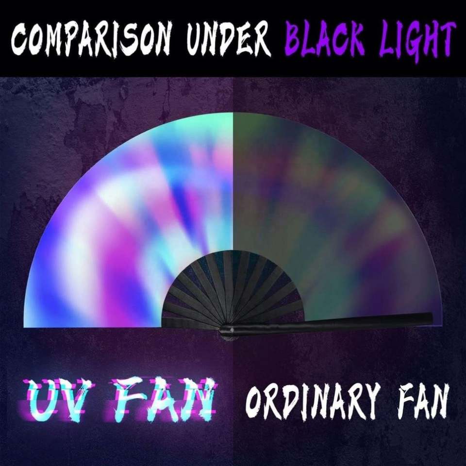 Abanico grande de mano para rave con brillo UV