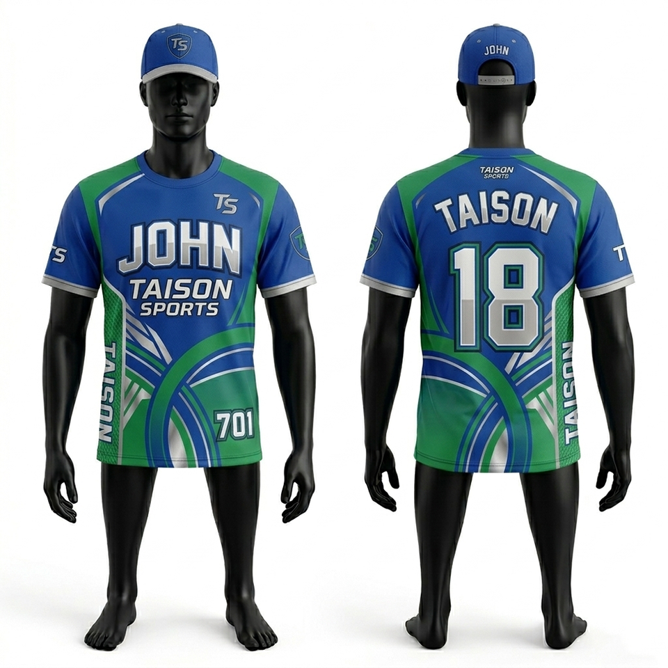 Camiseta Deportiva de Poliéster de Alto Rendimiento de 160 g/m² para Hombre, Color Azul Rey, Verde Neón con Paneles Grises en los Hombros, Logotipo Personalizado por Sublimación