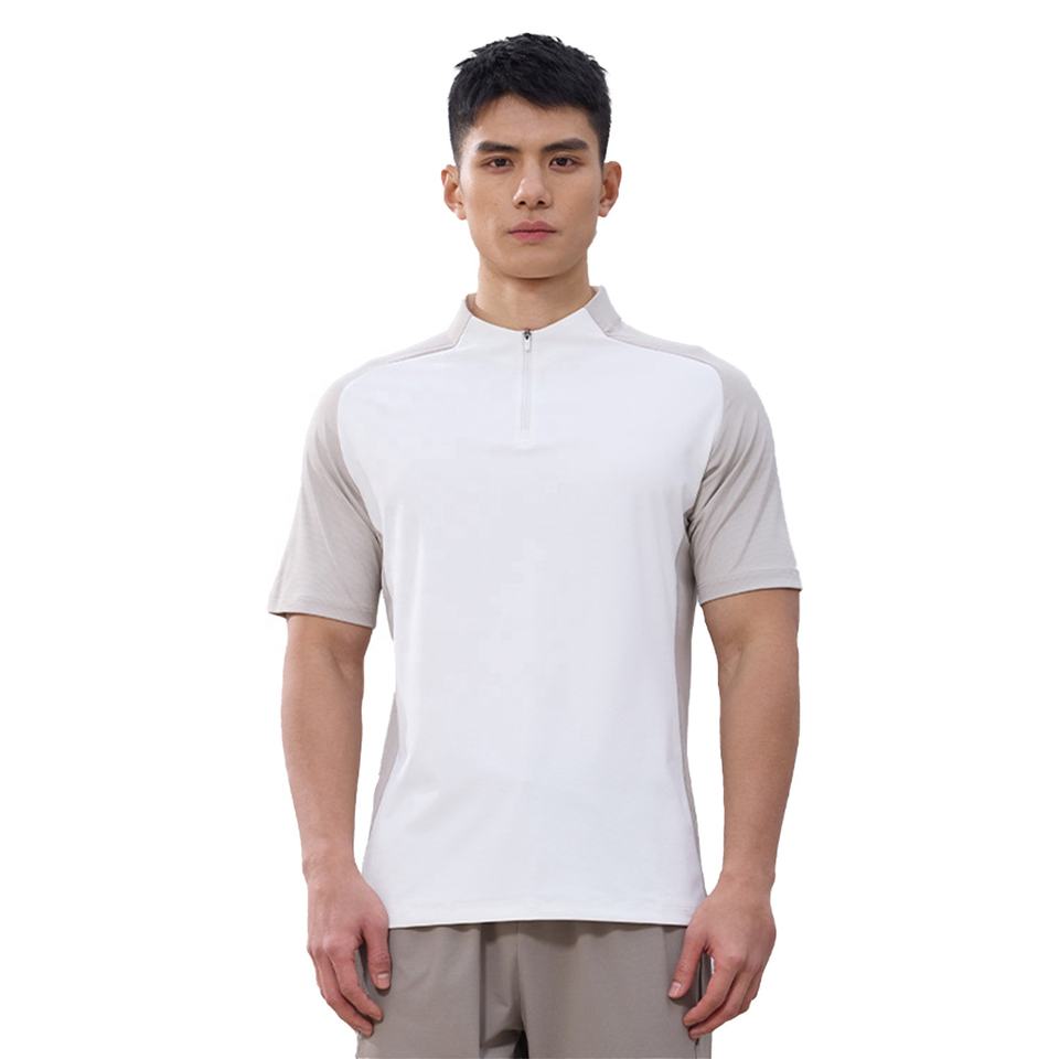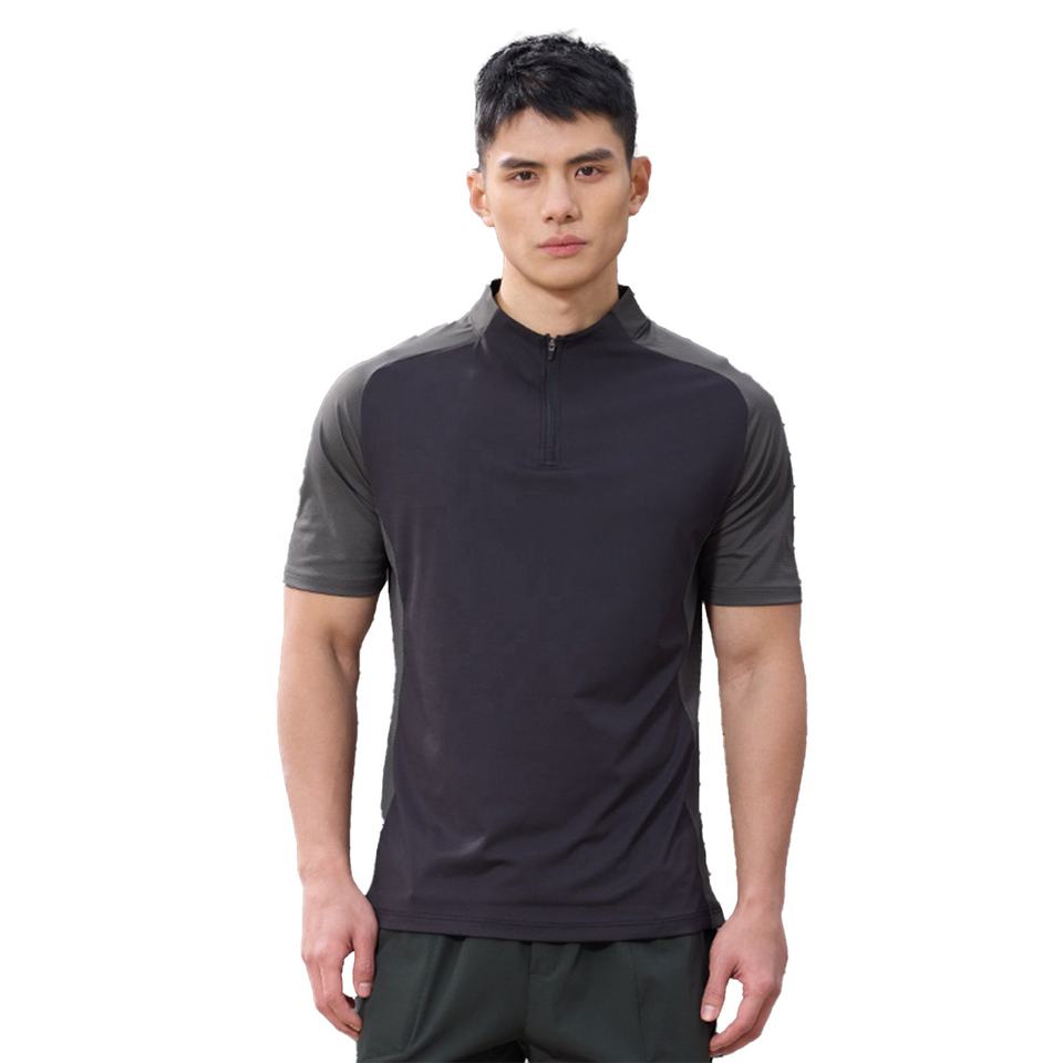 Alta calidad 180gsm 82.5% poliéster 17.5% Spandex de secado rápido Muscle Fit Quarter Zip Active Top entrenamiento atlético gimnasio camisa para hombres