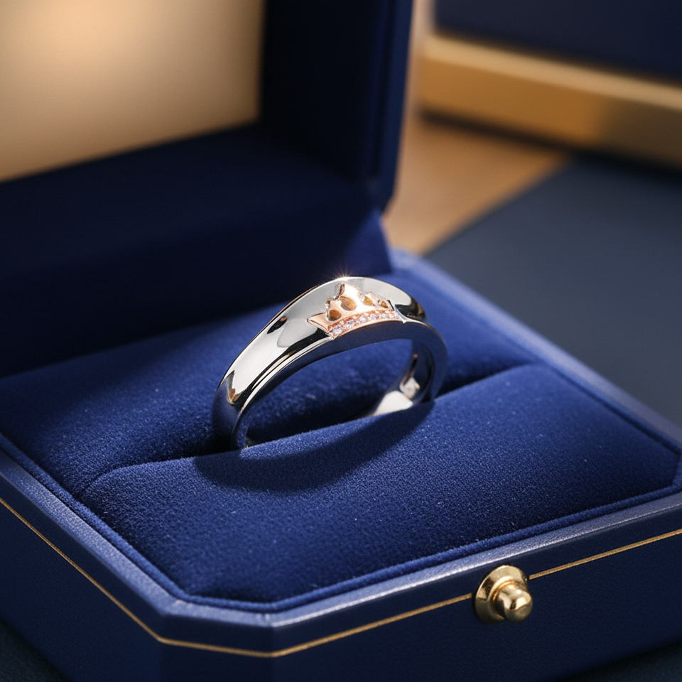 Anillos de diseño de corona real ligeros de proveedor mayorista chino, joyería de oro blanco y oro rosa macizo de 18 quilates con diamantes naturales auténticos para uso diario.