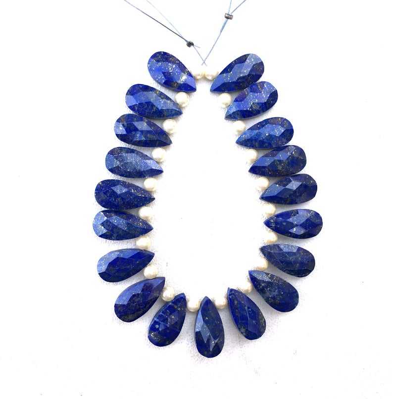 Juego de 19 piezas de alta calidad de piedras preciosas de lapislázuli azul Natural, cuentas de Briolette facetadas en forma de pera para la fabricación de joyas hechas a mano
