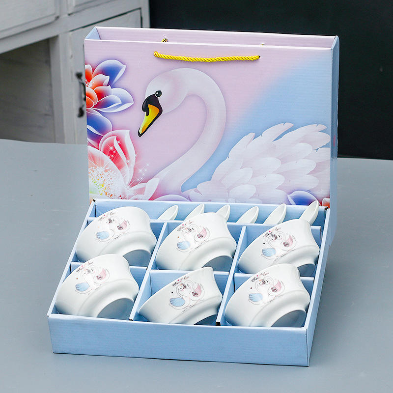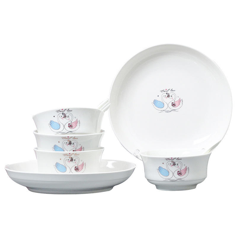 Juego de Vajilla de Cerámica de Alta Calidad con Diseño de Cisne Blanco, 2, 4 o 6 Piezas, para Regalo de Boda