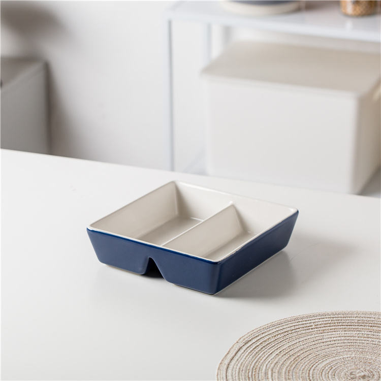 High quality 2 compartment appetizer tapas ceramic serving dish plates buffet dinner serving dishes set for serving food