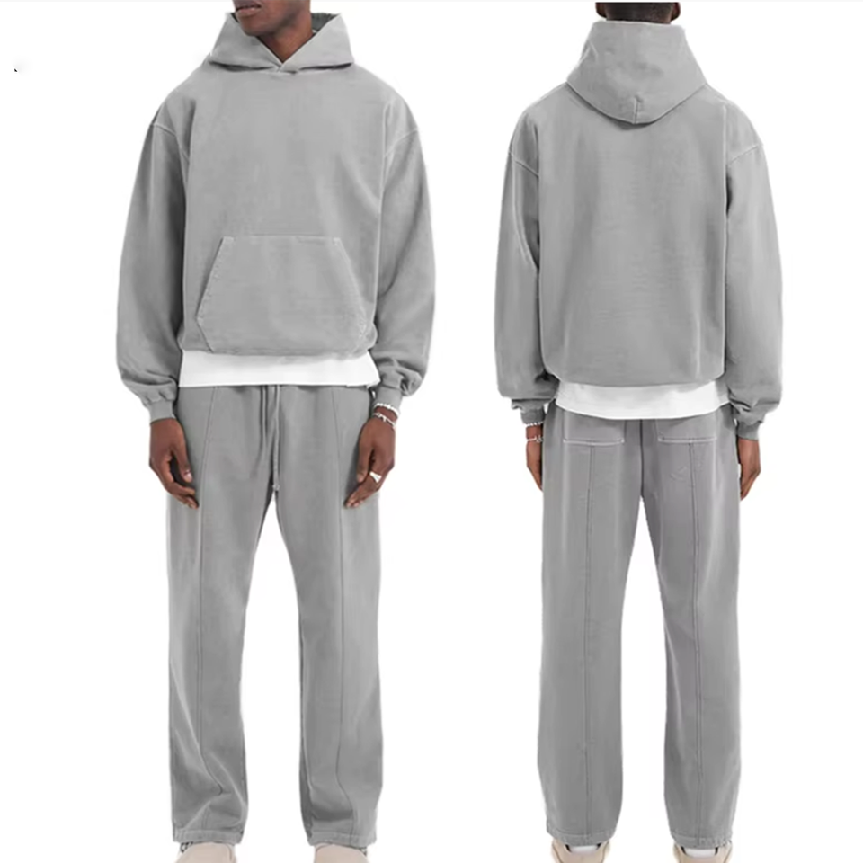 Chándal con capucha personalizado de 2 piezas de alta calidad para hombre, chándal de pierna recta para deportes callejeros, conjunto de chándal de poliéster 100% para hombre