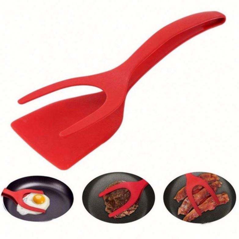 Espátula de agarre y tapa 2 en 1 de alta calidad, pinzas para huevos, tortitas, tostadas, tortilla, espátula de huevo de nailon volcada, espátula para panqueques