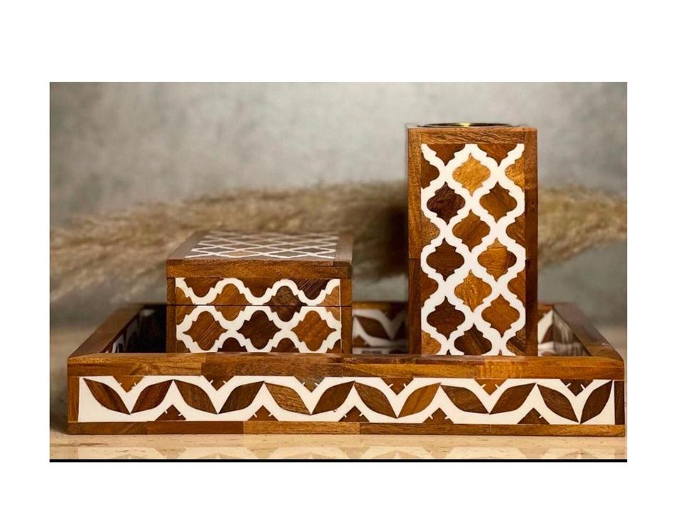 Quemador de Incienso OUD de Alta Calidad con Incrustaciones de Nácar y Madera de Sándalo, con Caja de Acrílico y Bandeja de Madera, Regalo para Ramadán