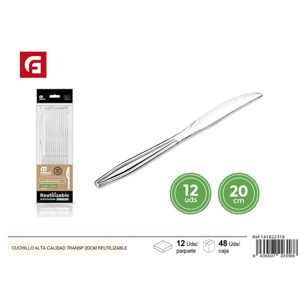 Cuchillo de cocina transparente reutilizable de 20cm de alta calidad-Cubiertos Premium