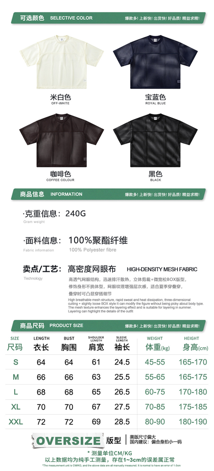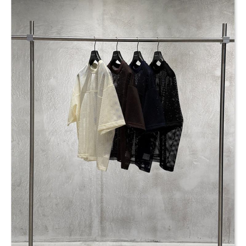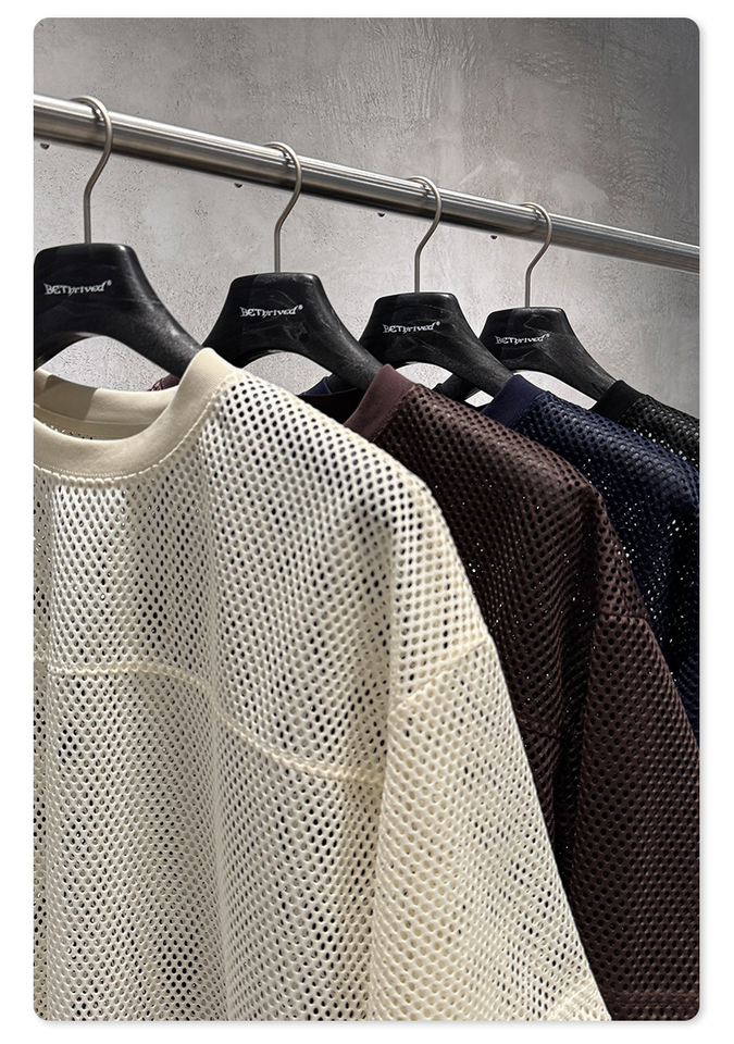 Camiseta de Manga Corta de Alta Calidad, 240G, Primavera y Verano, Estilo Europeo y Americano, Corte Cuadrado, Malla en Capas, Diseño Hueco, para Hombre